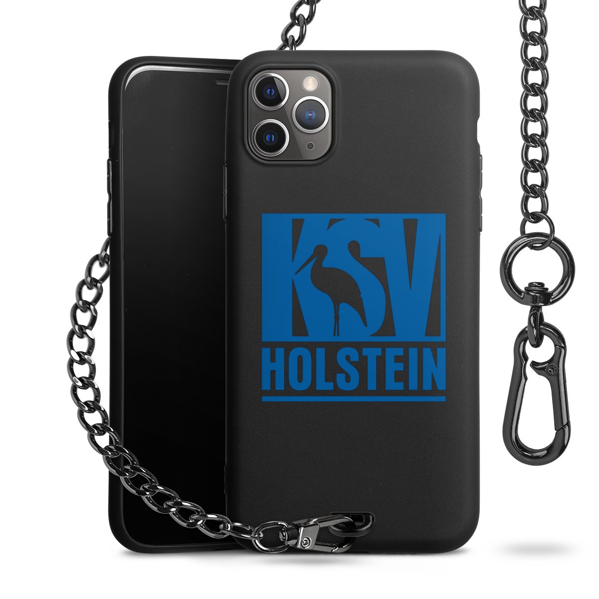 • Mattschwarze Handyhülle mit Metallkette