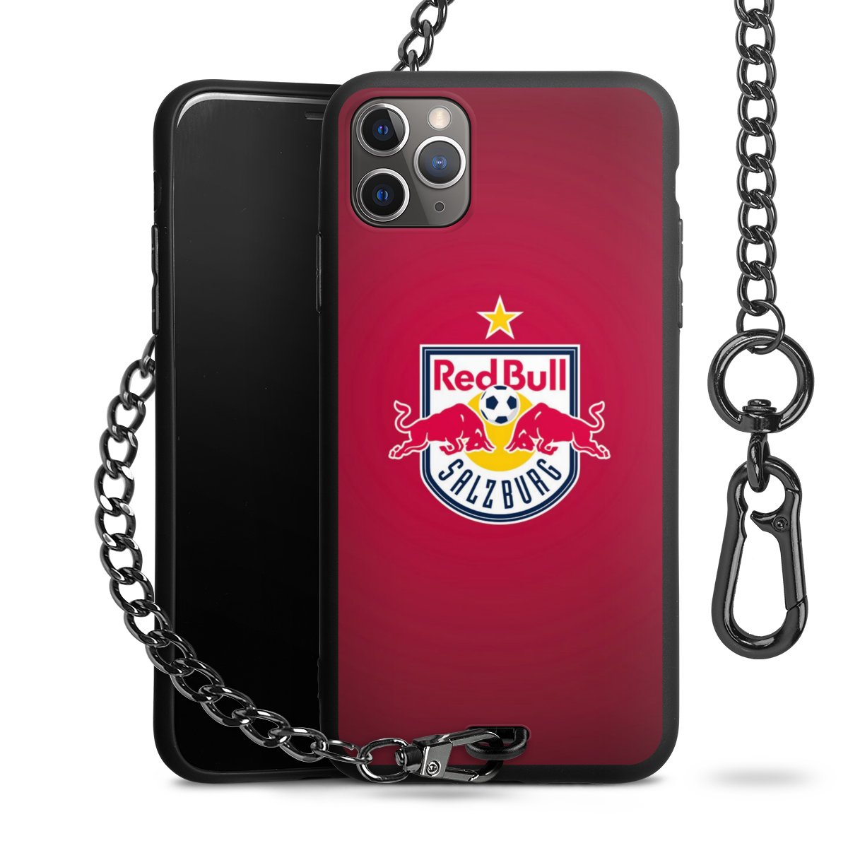• Mattschwarze Handyhülle mit Metallkette