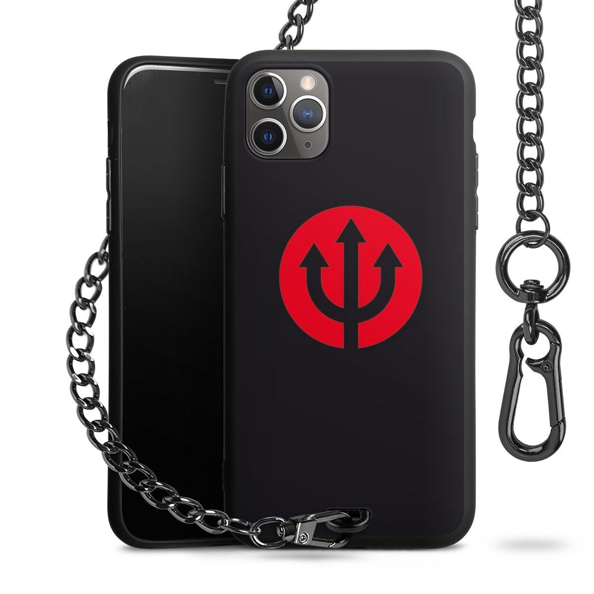 - Mattschwarze Handyhülle mit Metallkette