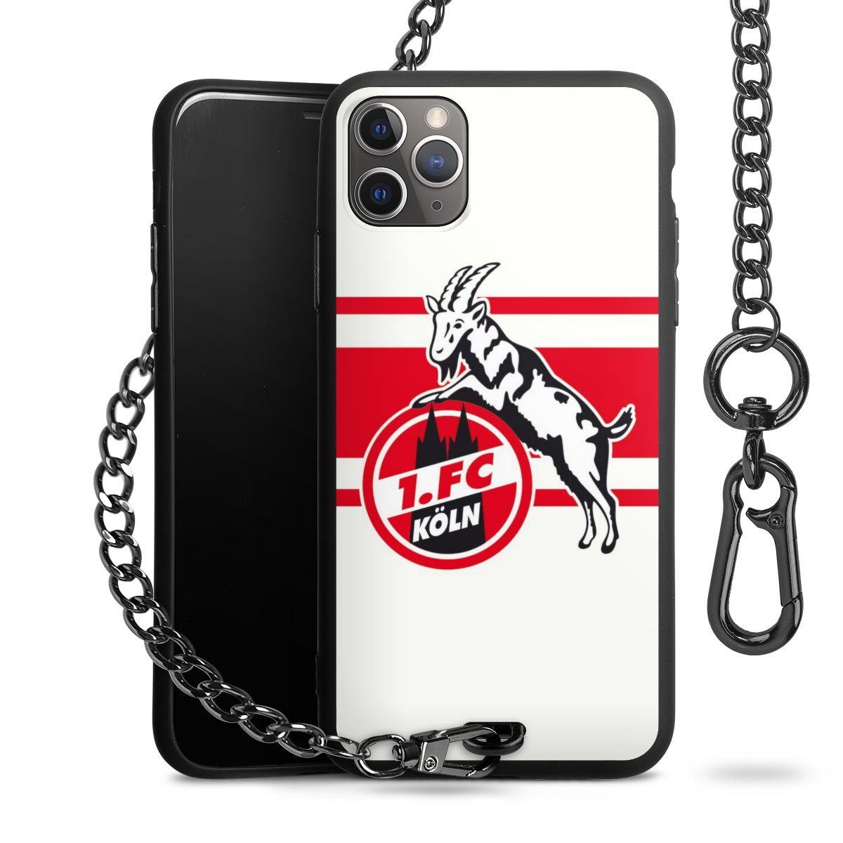 Die Handyhülle verfügt über eine mittig am unteren Rand platzierte Öse, an der die Metallkette stabil befestigt ist. Bestelle die Hülle einfach für Dein Smartphone-Modell, dann passt sie wie angegossen und Du brauchst sie bloß einmal anzudrücken. Handy in die Tasche, Karabiner an den Hosenbund – schon kann die Party starten.