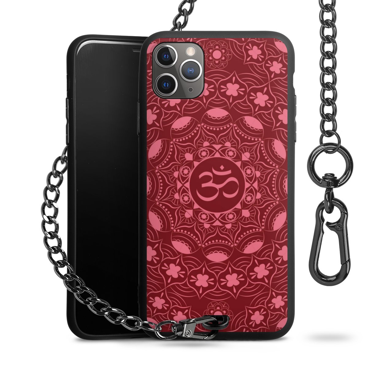 - Mattschwarze Handyhülle mit Metallkette