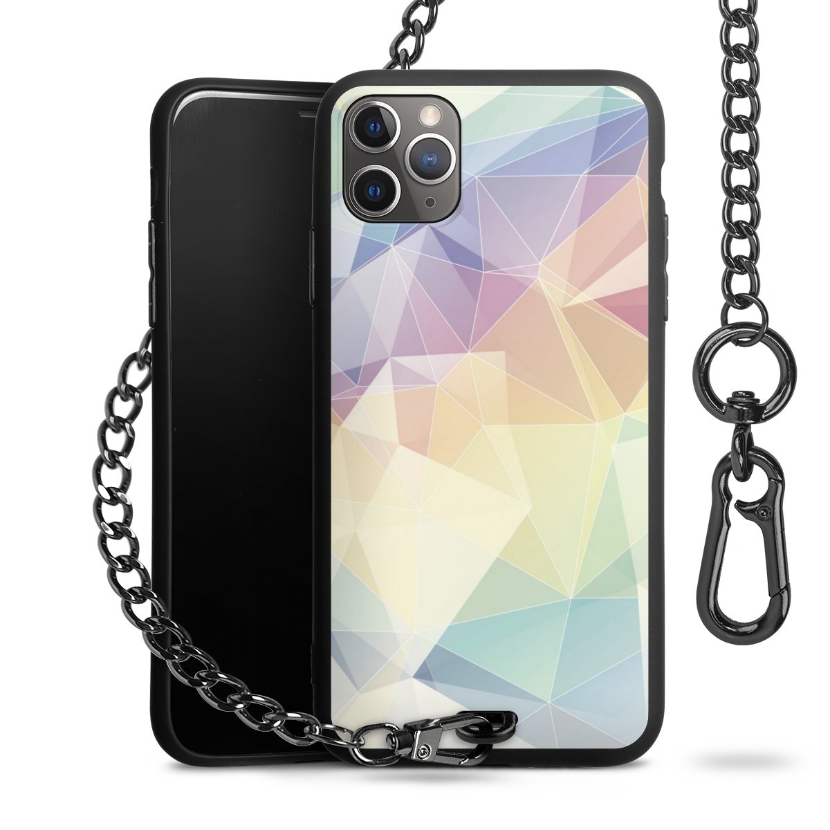 - Mattschwarze Handyhülle mit Metallkette