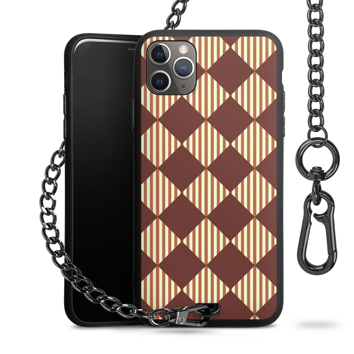 - Mattschwarze Handyhülle mit Metallkette