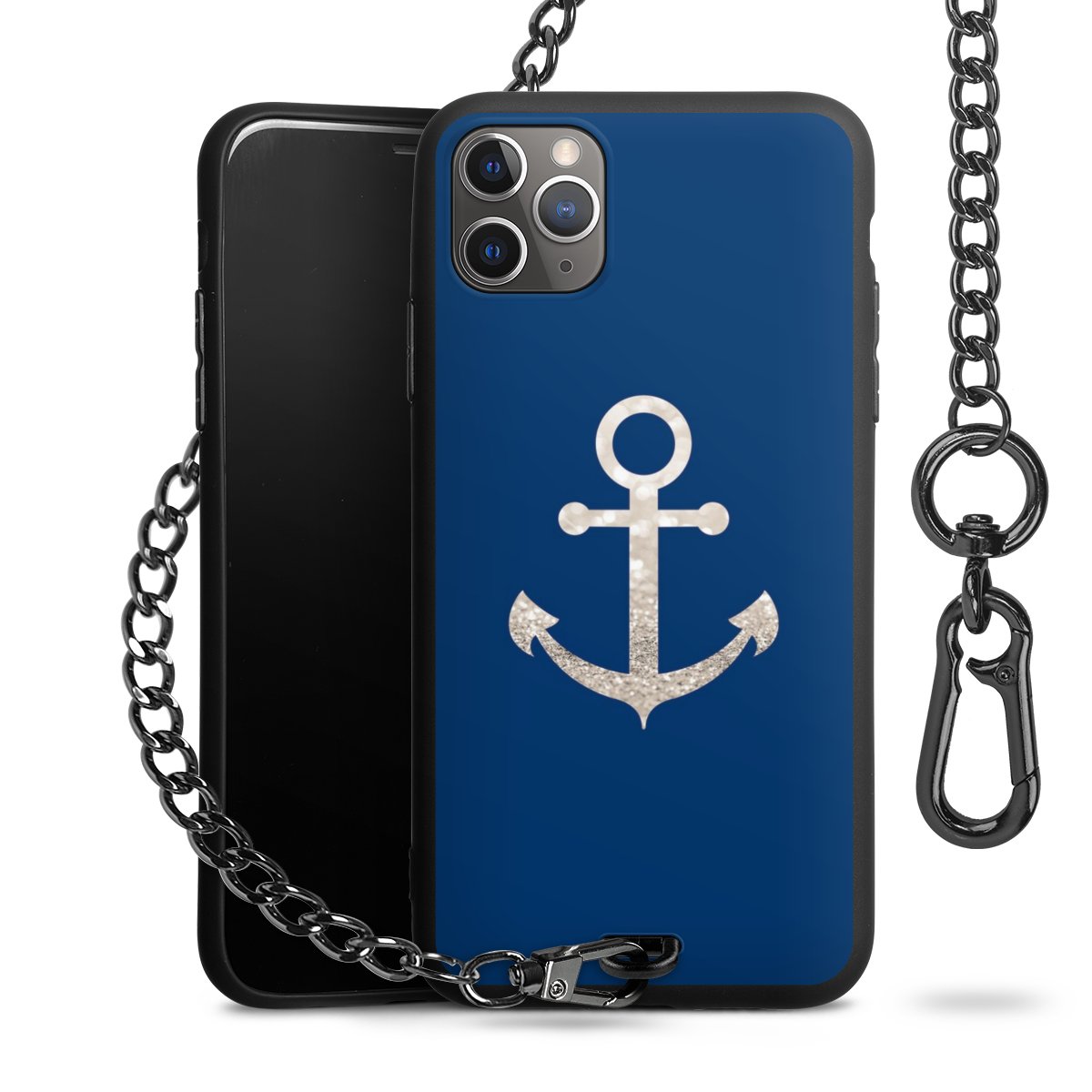 - Mattschwarze Handyhülle mit Metallkette