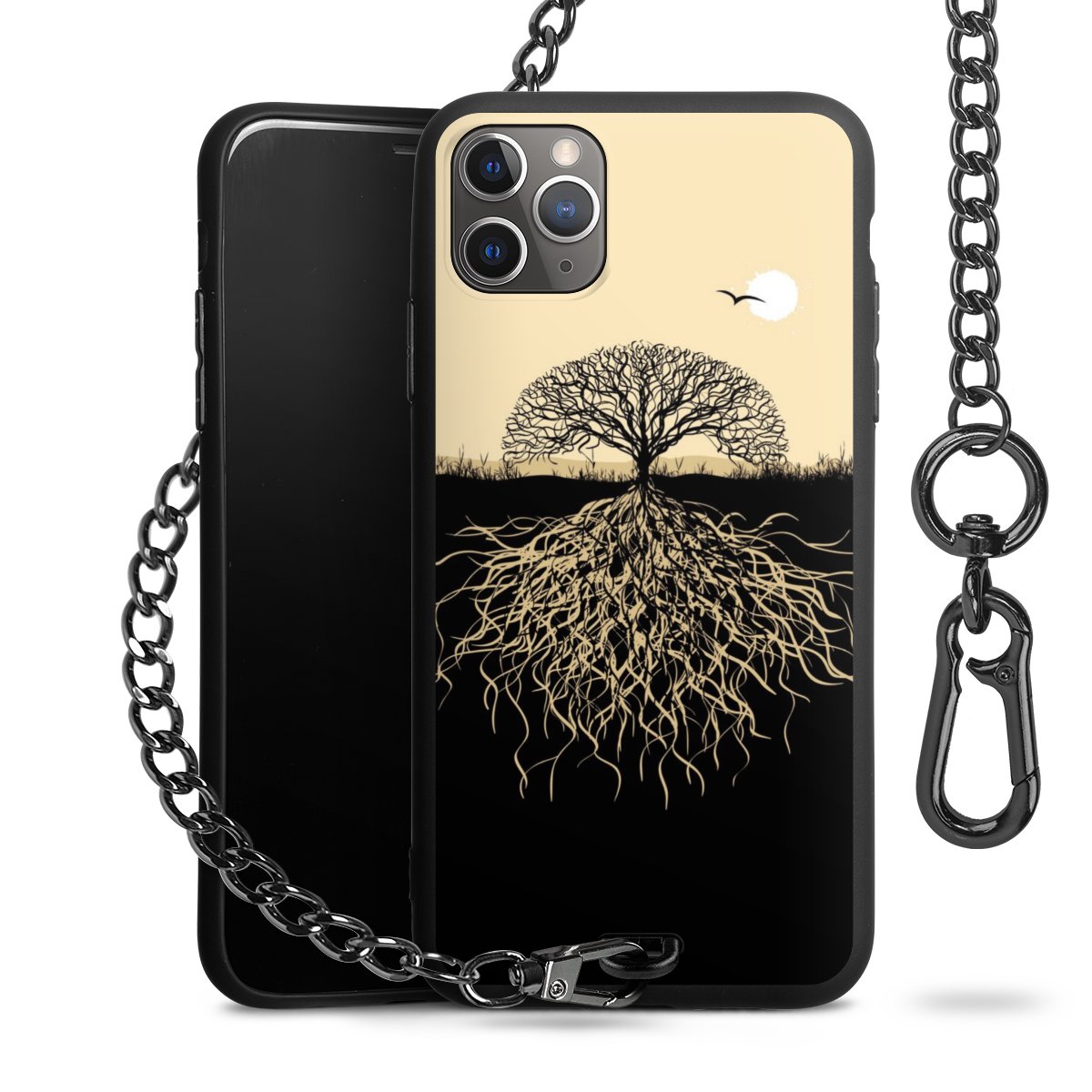 • Mattschwarze Handyhülle mit Metallkette