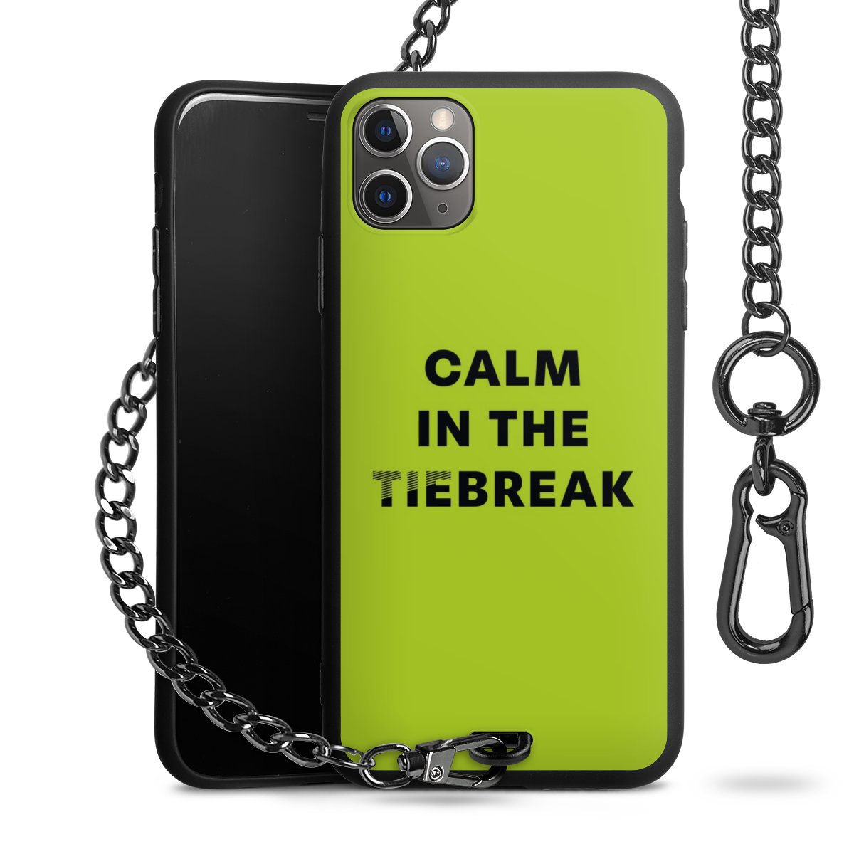 - Mattschwarze Handyhülle mit Metallkette