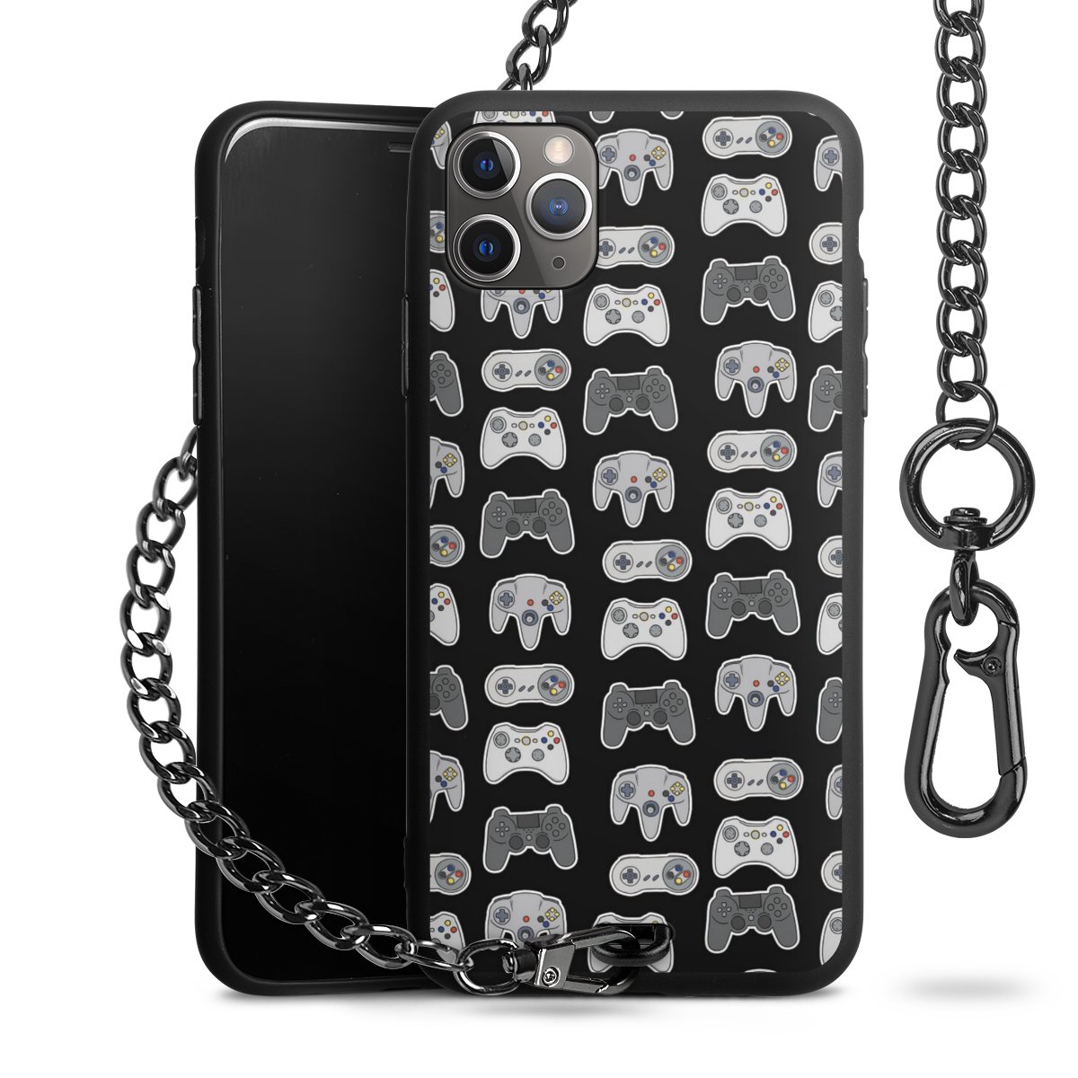 • Mattschwarze Handyhülle mit Metallkette