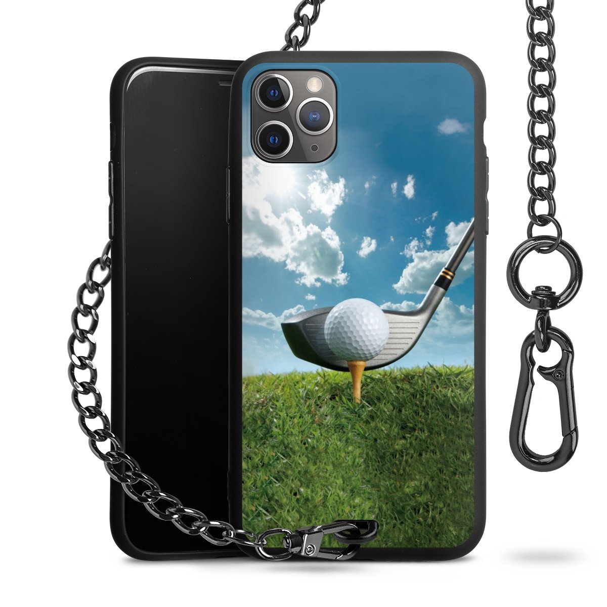 • Mattschwarze Handyhülle mit Metallkette