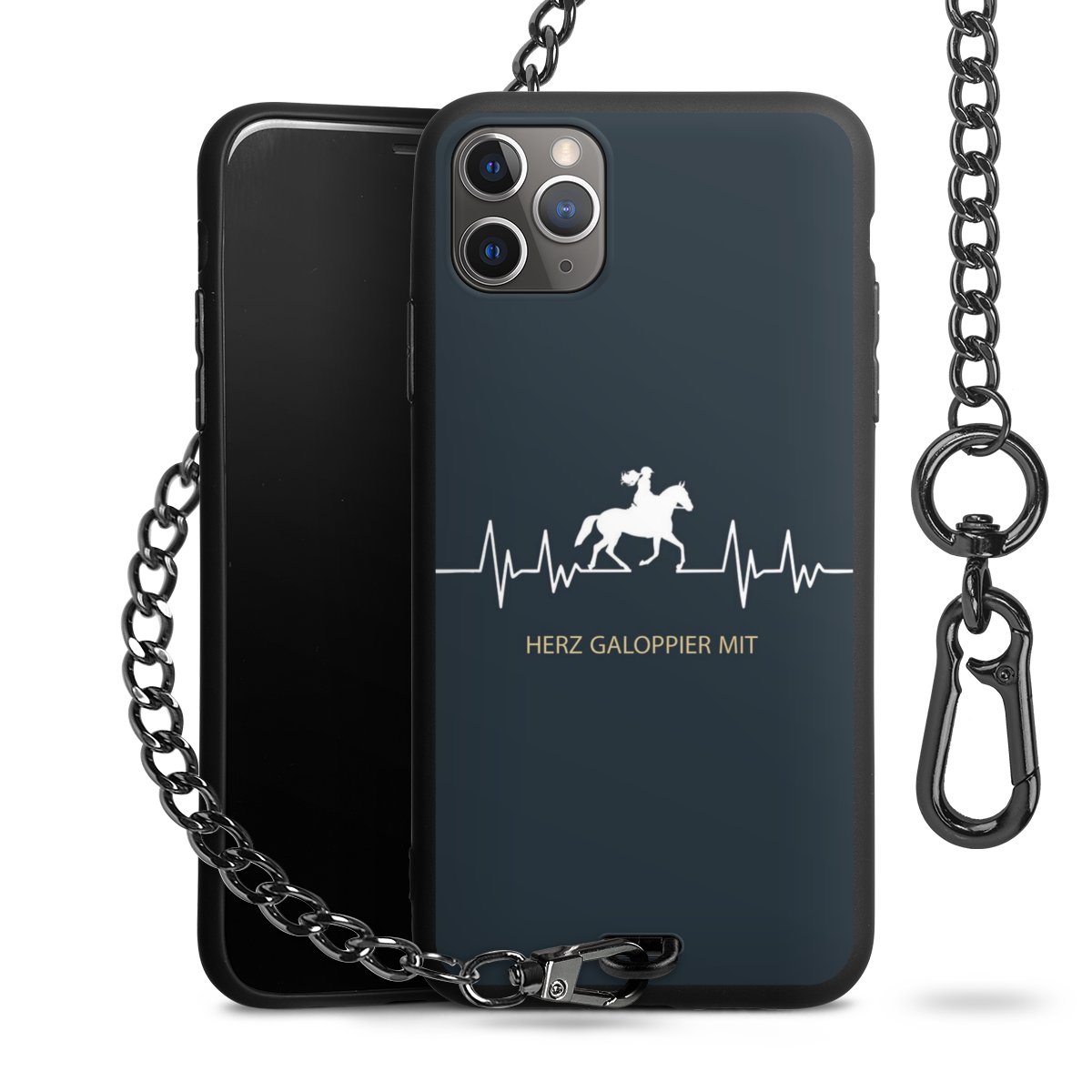 - Mattschwarze Handyhülle mit Metallkette