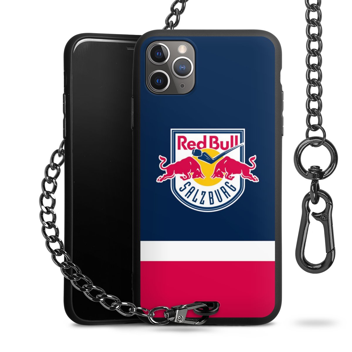 • Mattschwarze Handyhülle mit Metallkette