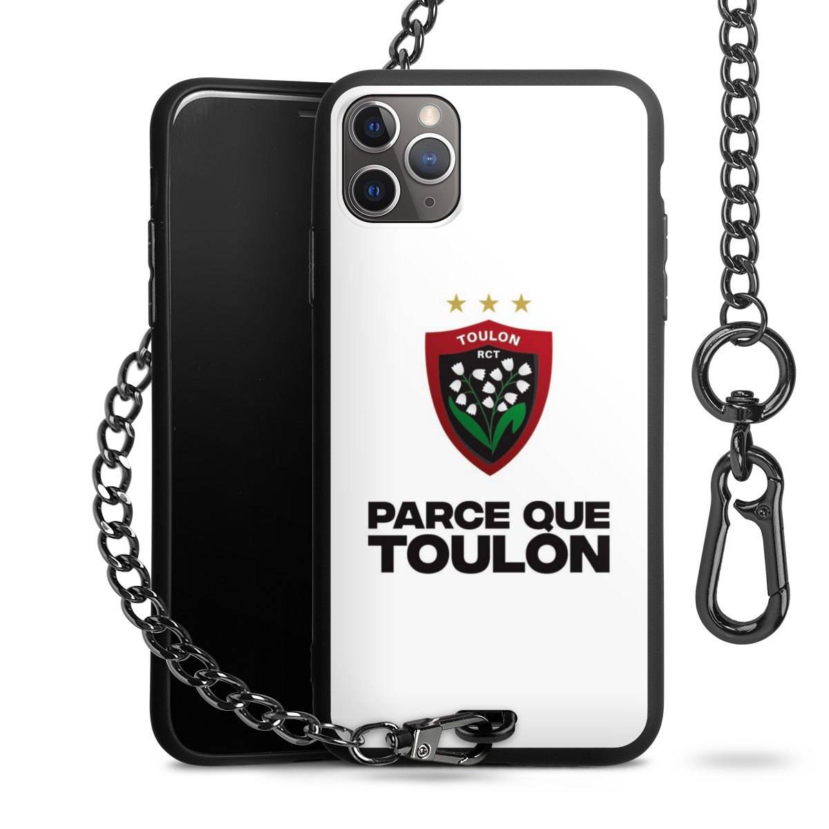- Mattschwarze Handyhülle mit Metallkette