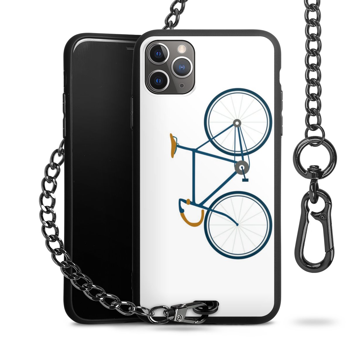 - Mattschwarze Handyhülle mit Metallkette