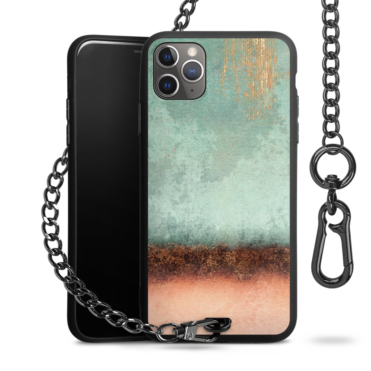 • Mattschwarze Handyhülle mit Metallkette