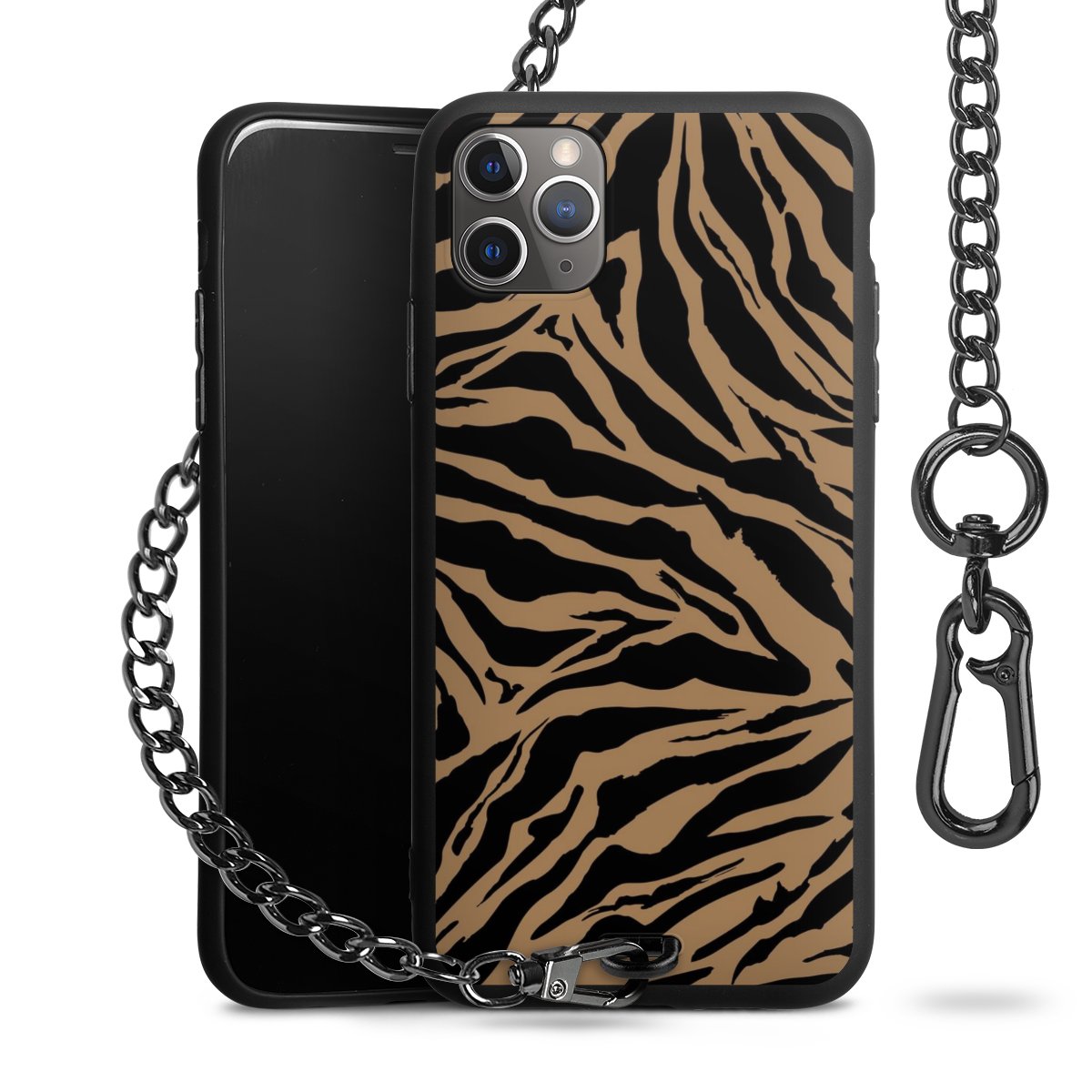 - Mattschwarze Handyhülle mit Metallkette
