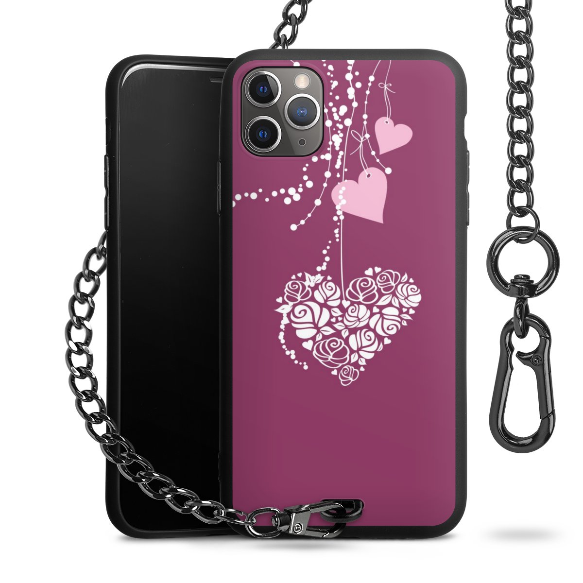 • Mattschwarze Handyhülle mit Metallkette