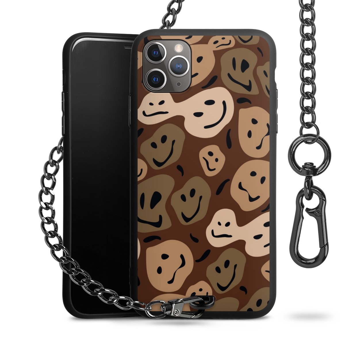 - Mattschwarze Handyhülle mit Metallkette