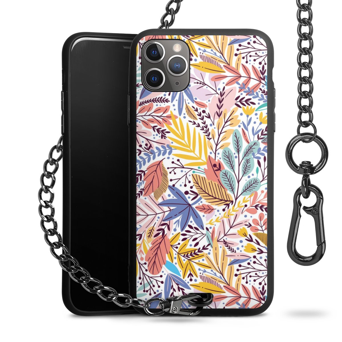 • Mattschwarze Handyhülle mit Metallkette