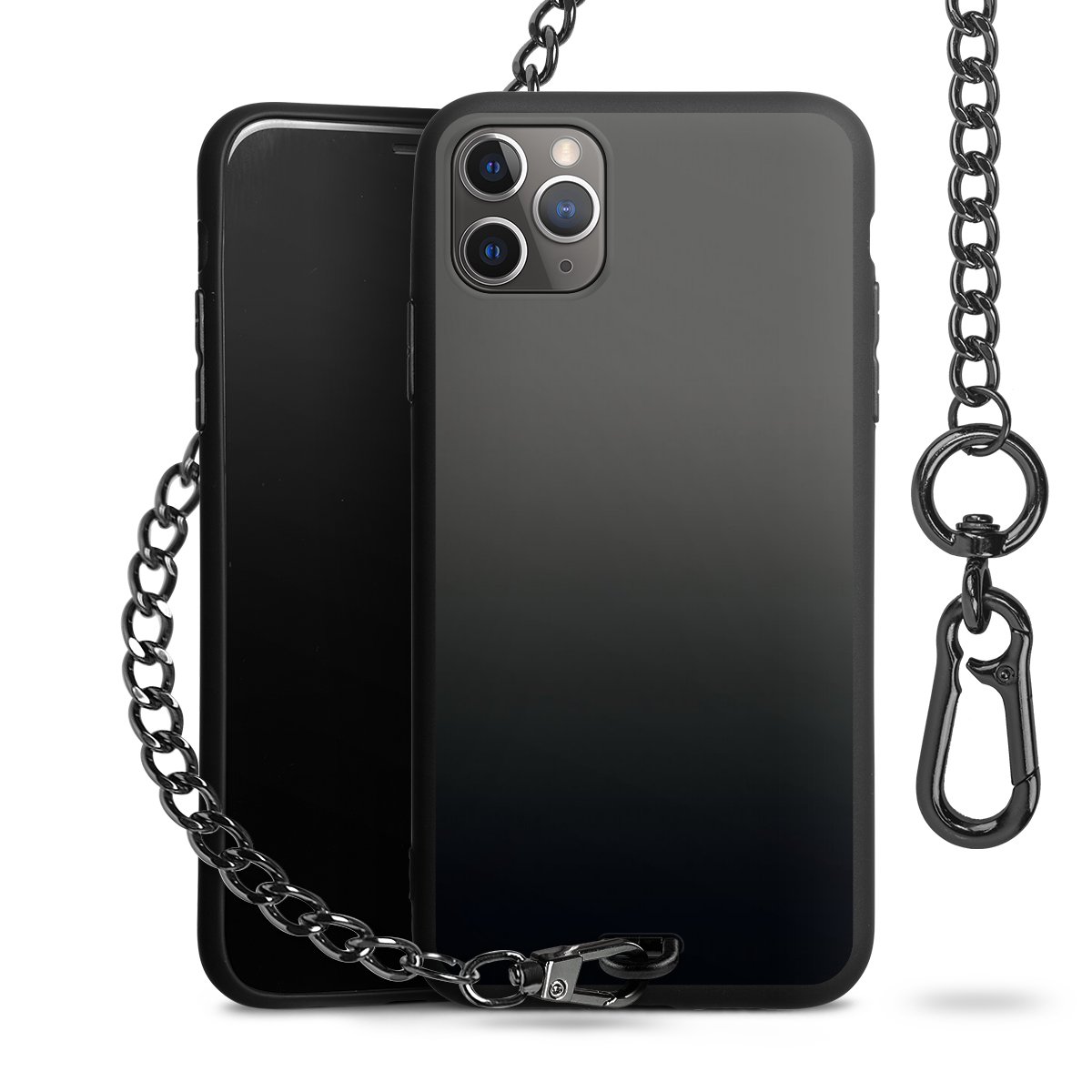 • Mattschwarze Handyhülle mit Metallkette