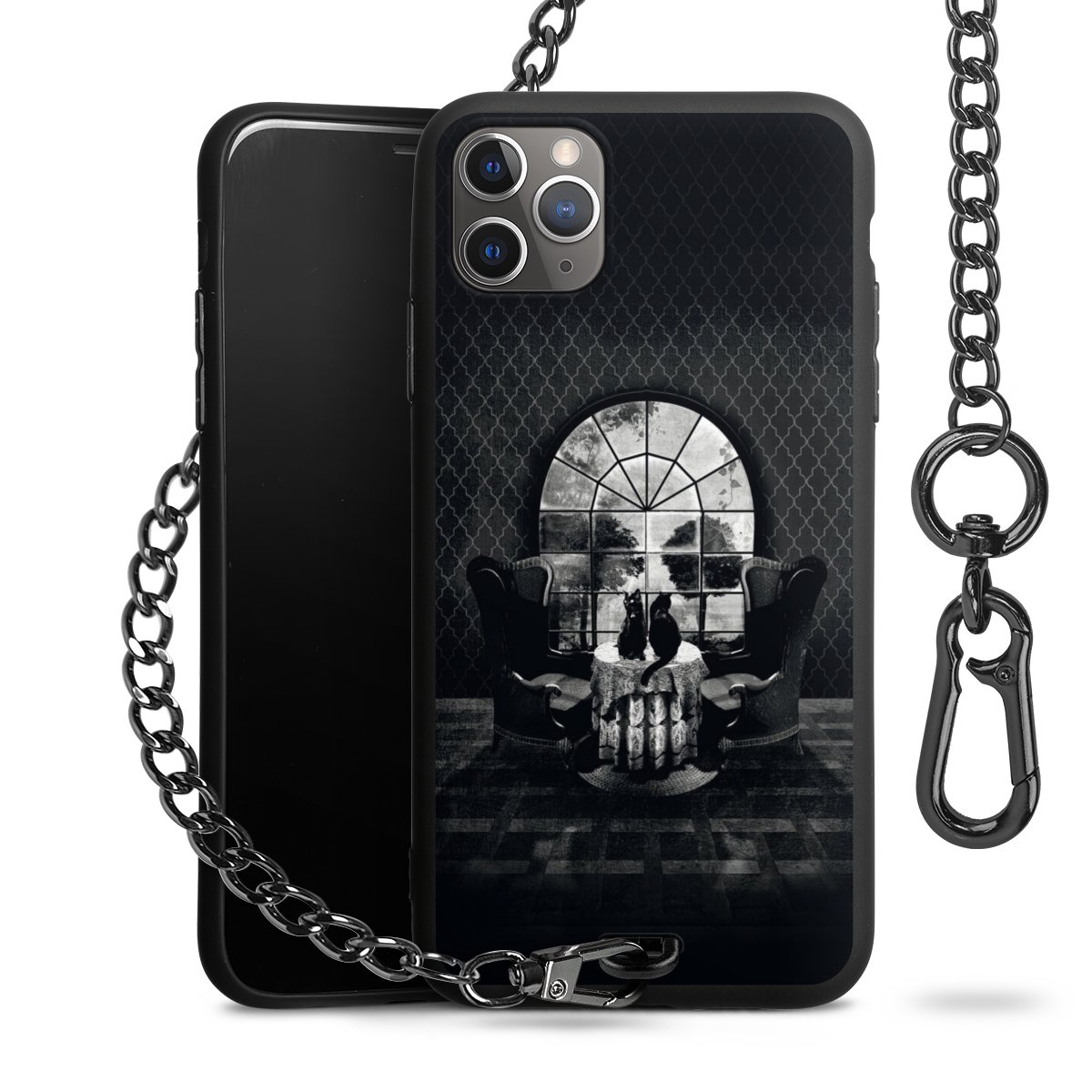• Mattschwarze Handyhülle mit Metallkette