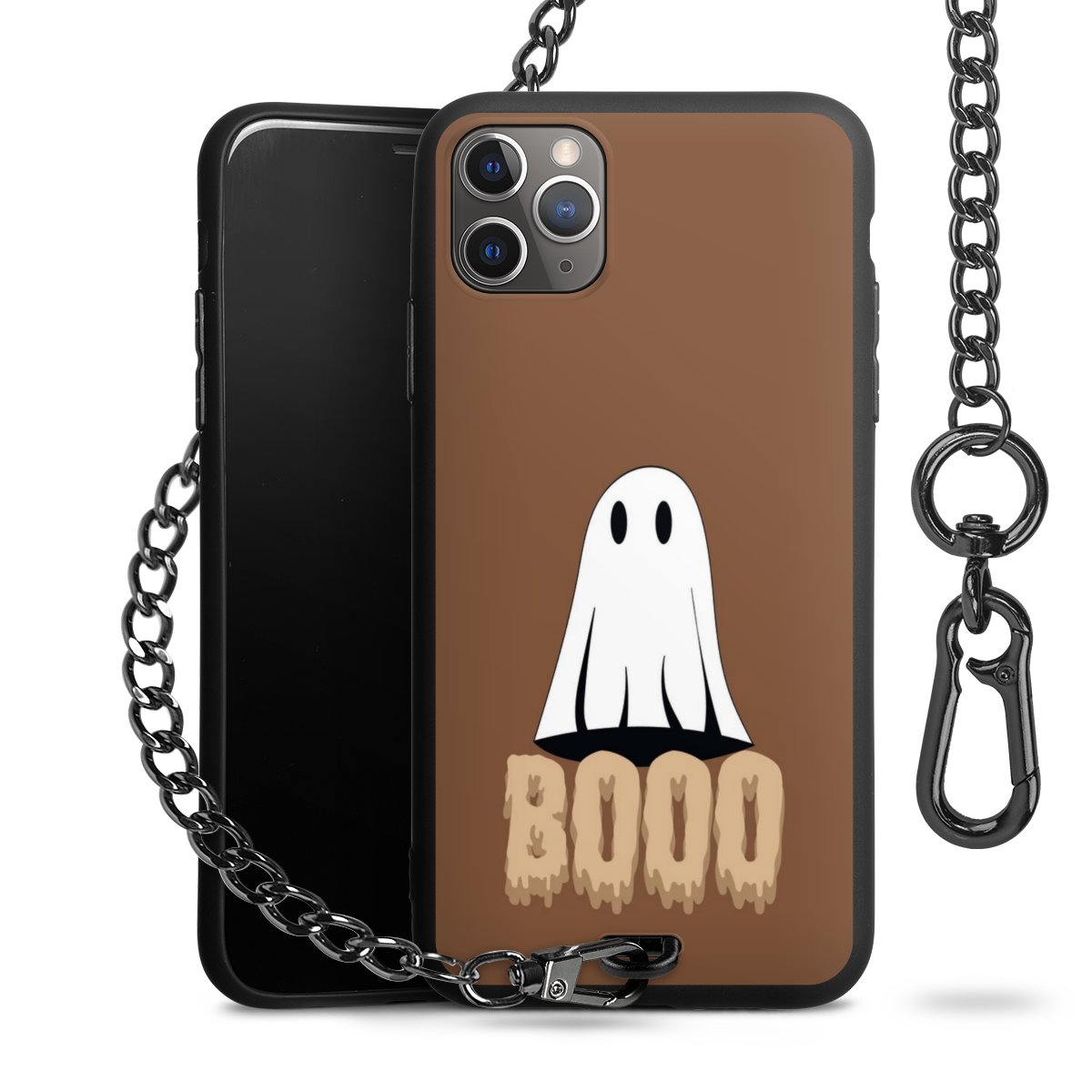 - Mattschwarze Handyhülle mit Metallkette