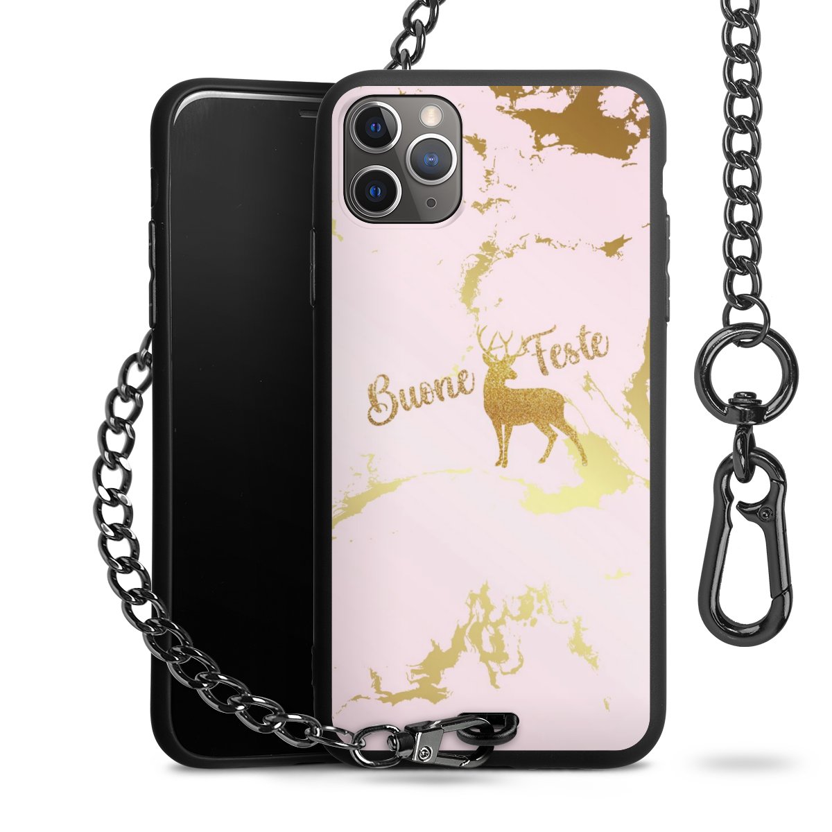 - Mattschwarze Handyhülle mit Metallkette