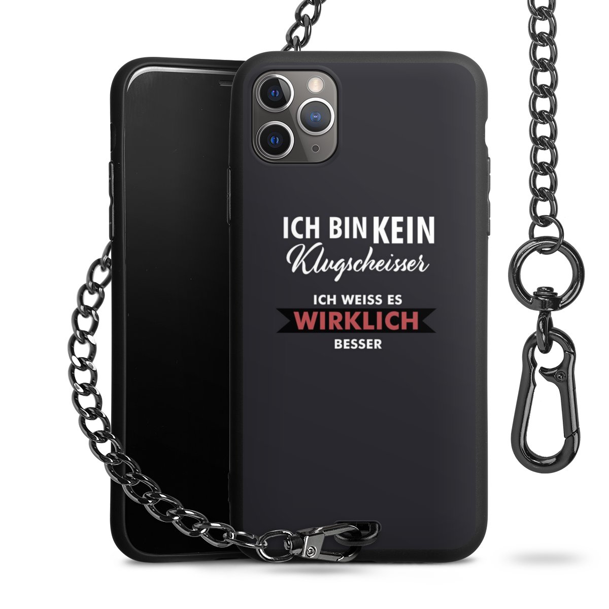 - Mattschwarze Handyhülle mit Metallkette