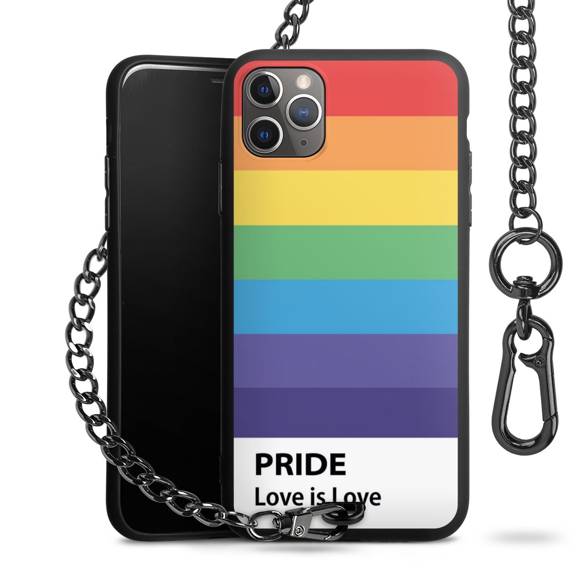 • Mattschwarze Handyhülle mit Metallkette