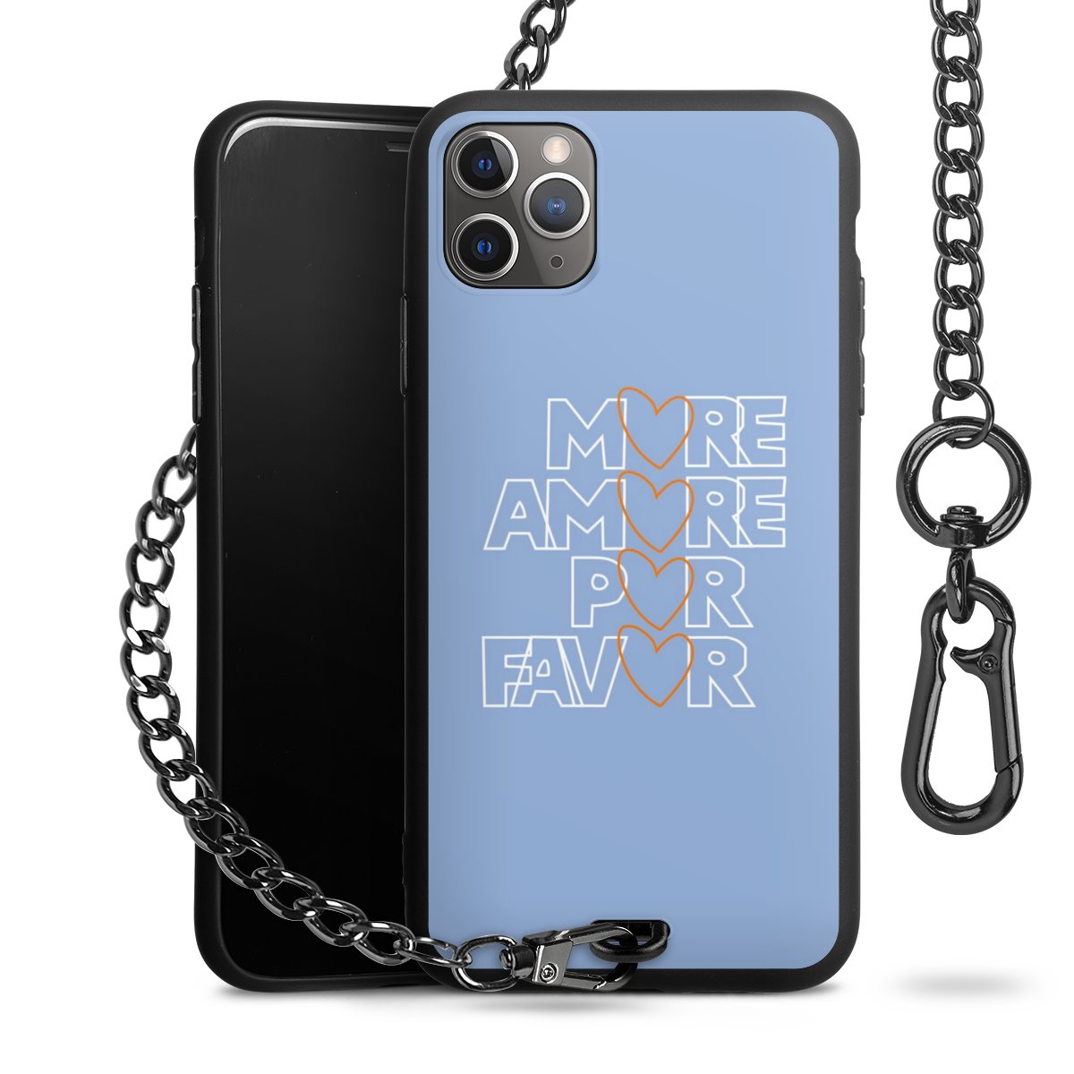 - Mattschwarze Handyhülle mit Metallkette