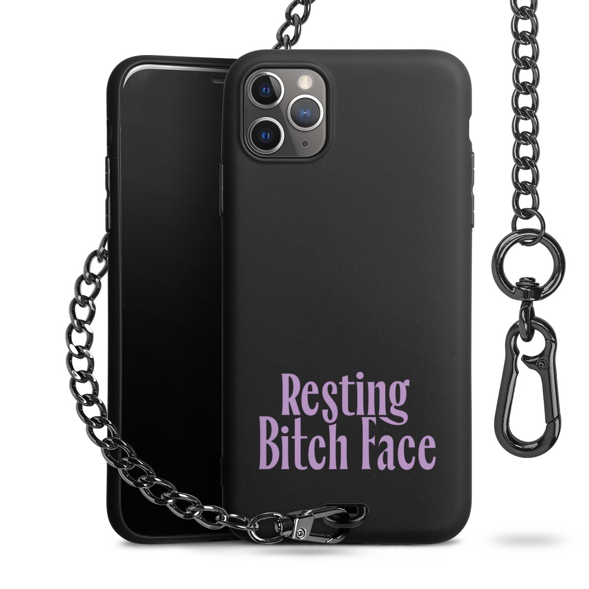 - Mattschwarze Handyhülle mit Metallkette