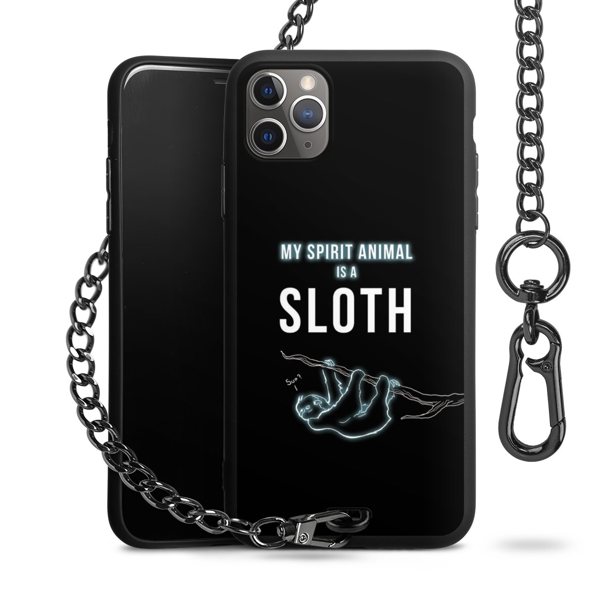 • Mattschwarze Handyhülle mit Metallkette
