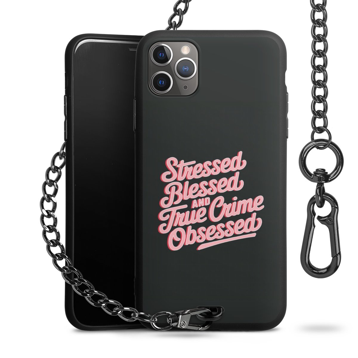 • Mattschwarze Handyhülle mit Metallkette