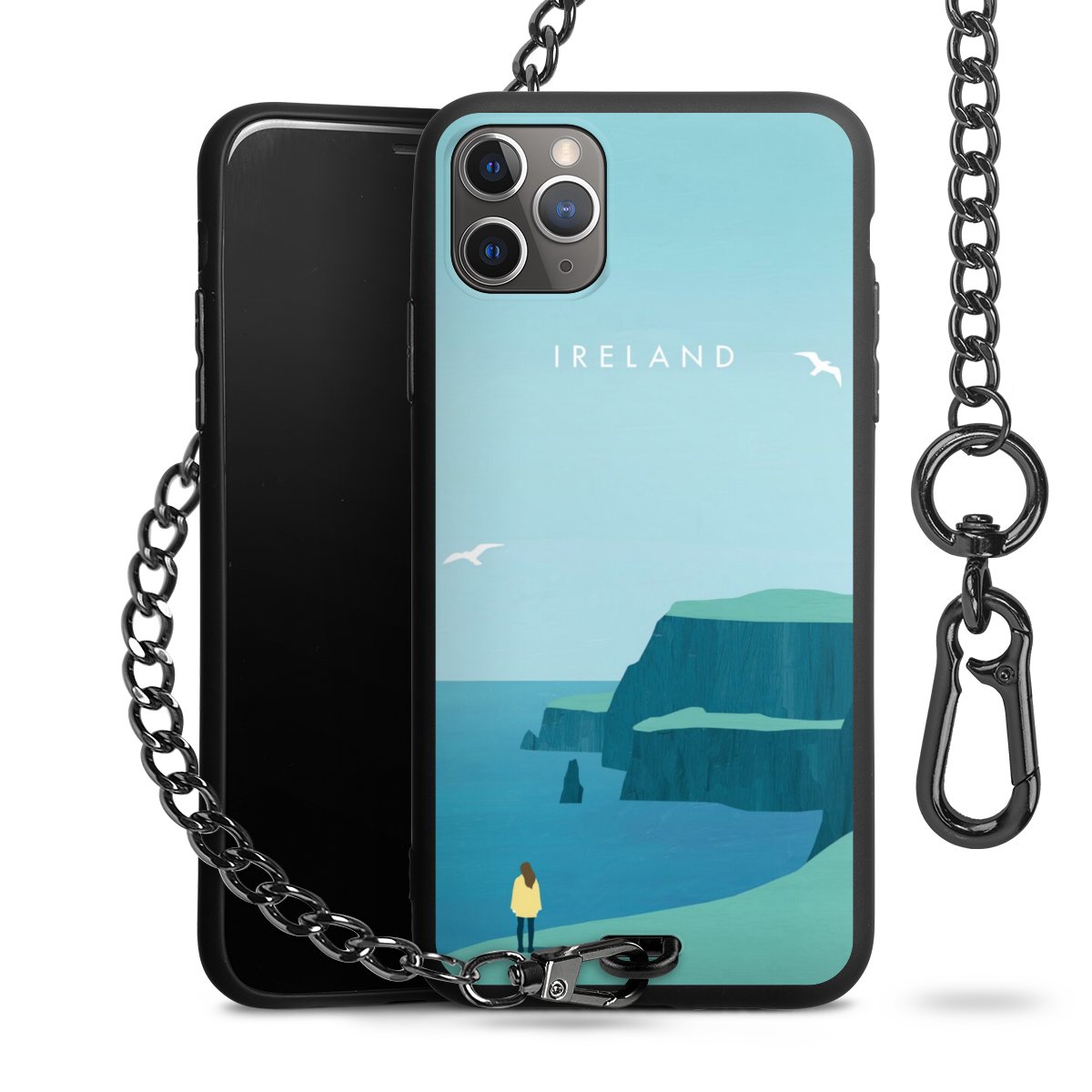 • Mattschwarze Handyhülle mit Metallkette
