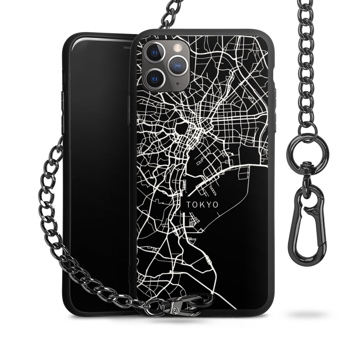 • Mattschwarze Handyhülle mit Metallkette