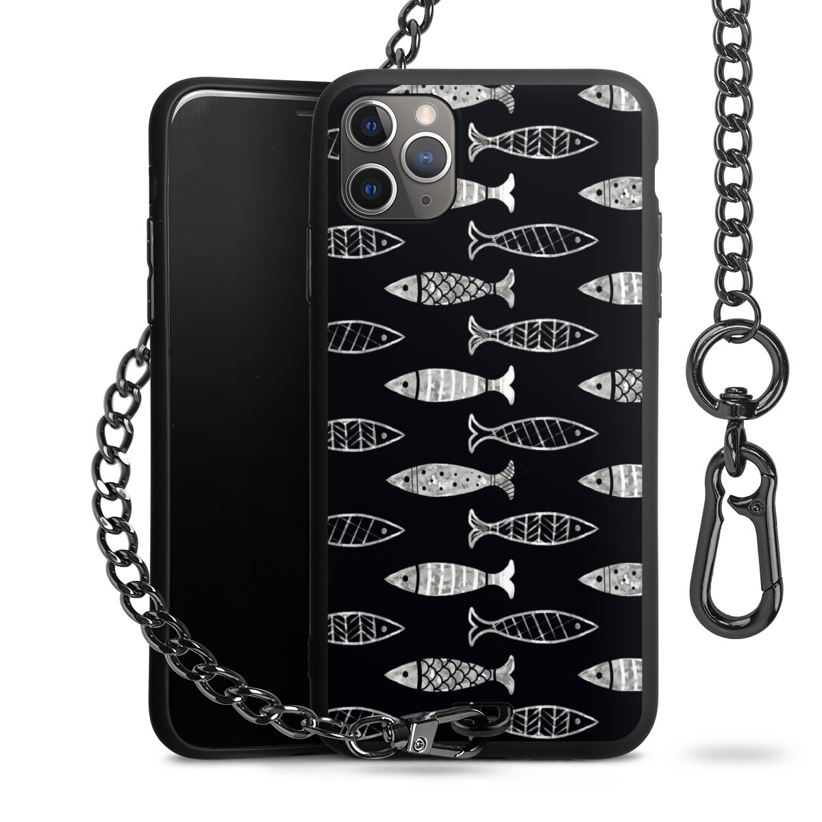 • Mattschwarze Handyhülle mit Metallkette