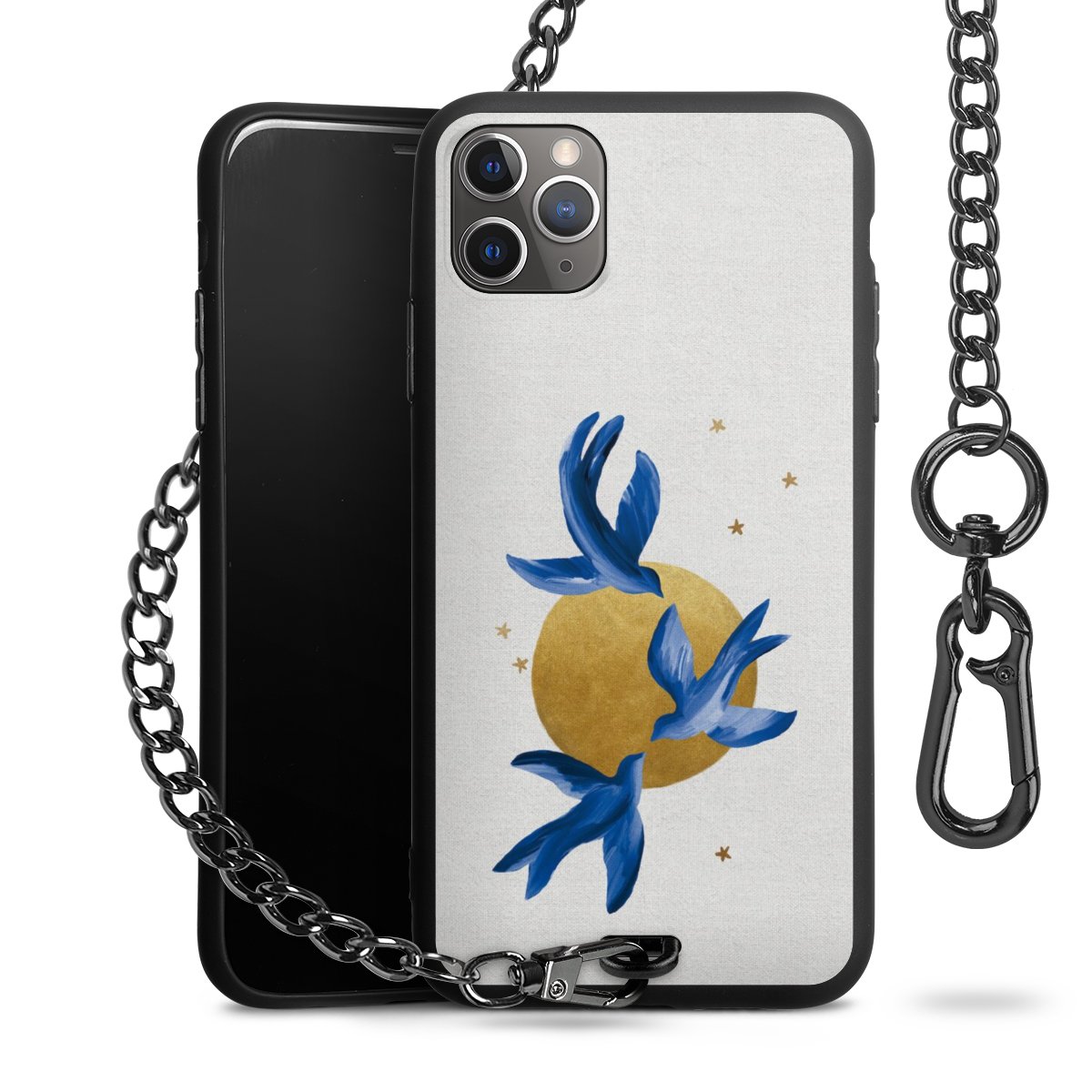 • Mattschwarze Handyhülle mit Metallkette