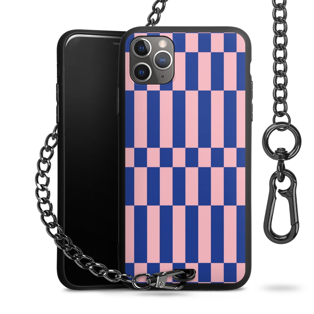 • Mattschwarze Handyhülle mit Metallkette