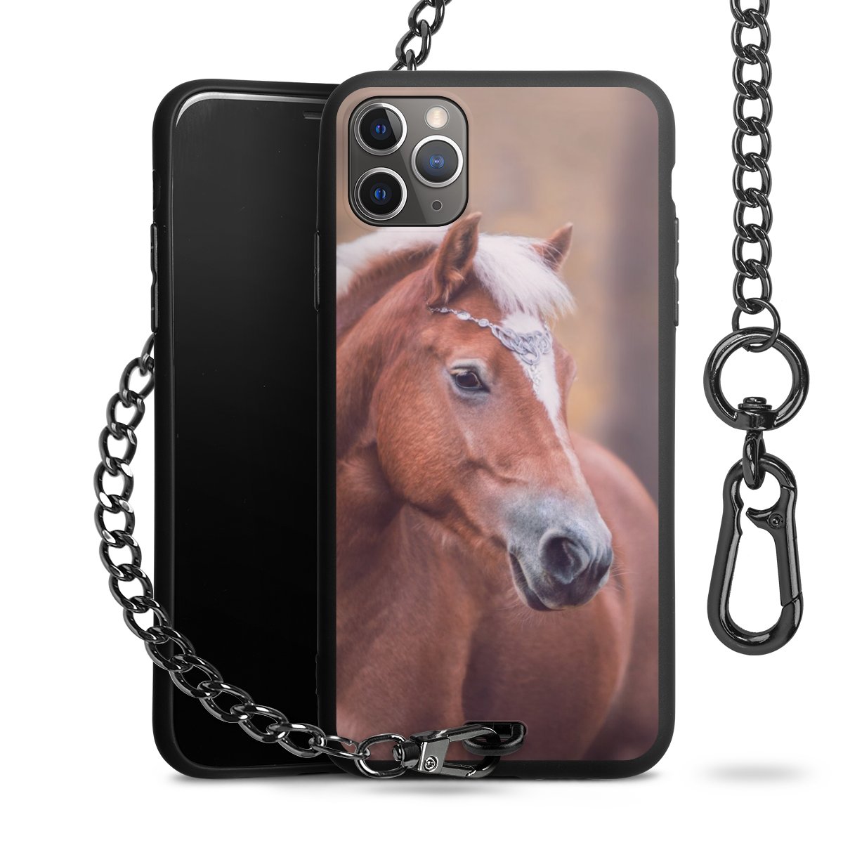 • Mattschwarze Handyhülle mit Metallkette