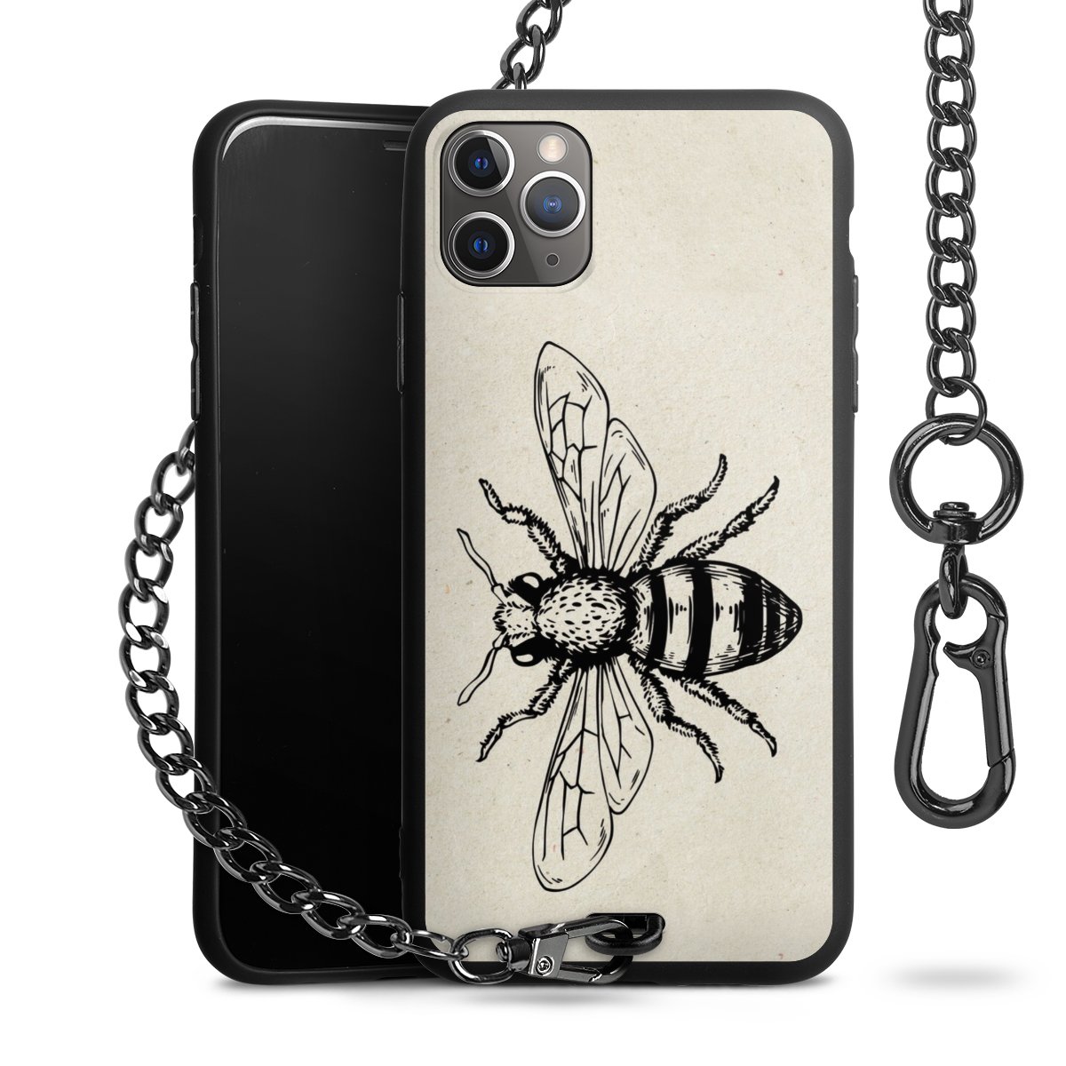 • Mattschwarze Handyhülle mit Metallkette