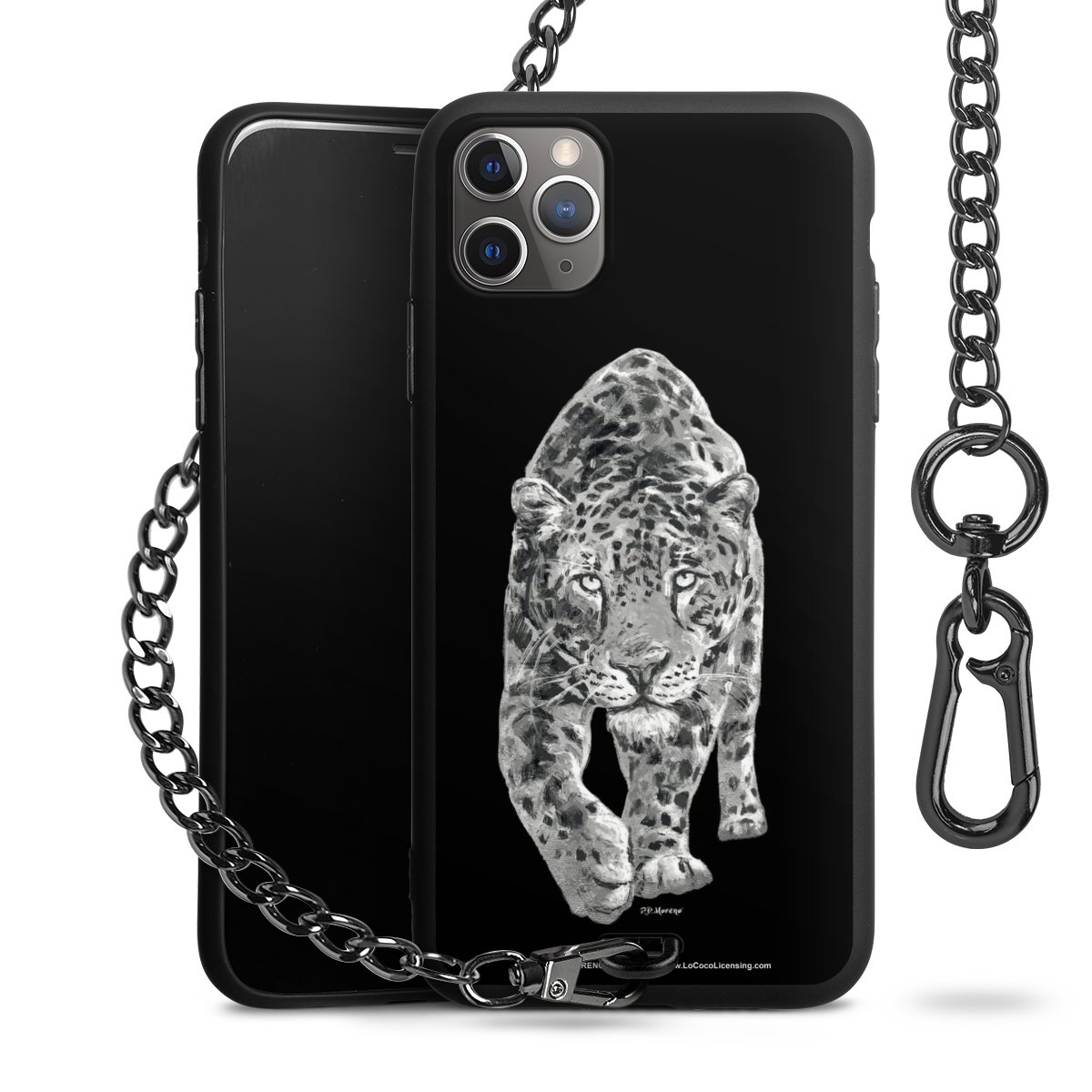 • Mattschwarze Handyhülle mit Metallkette