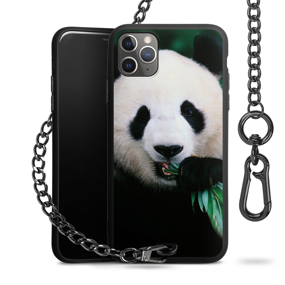 • Mattschwarze Handyhülle mit Metallkette