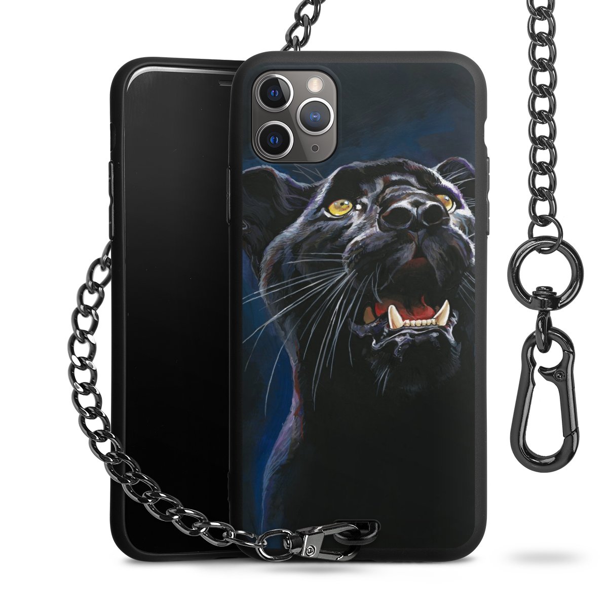 • Mattschwarze Handyhülle mit Metallkette
