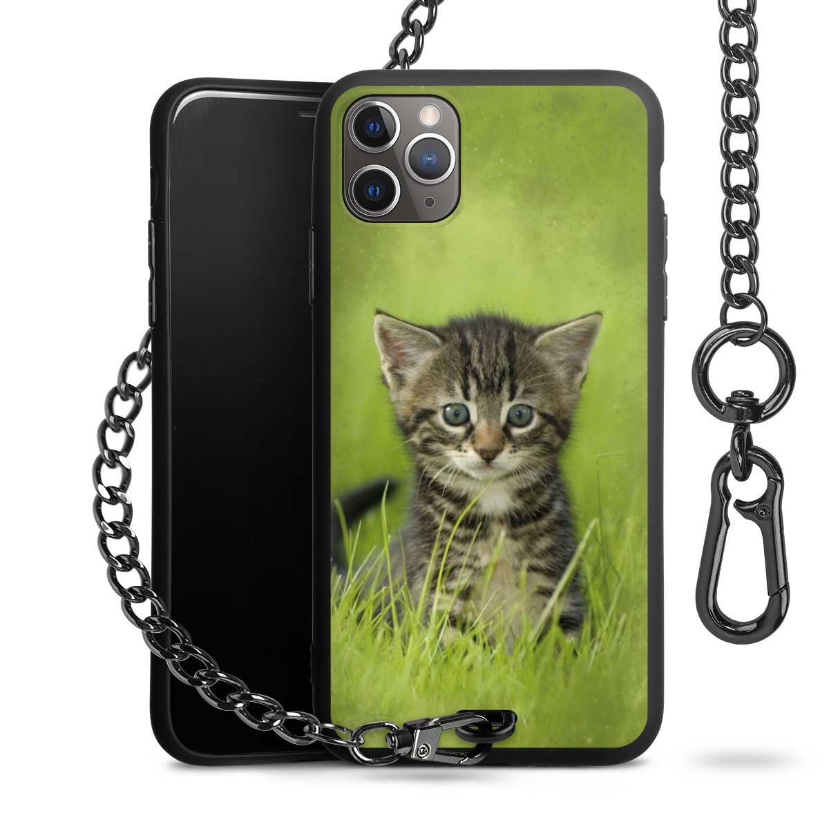 - Mattschwarze Handyhülle mit Metallkette