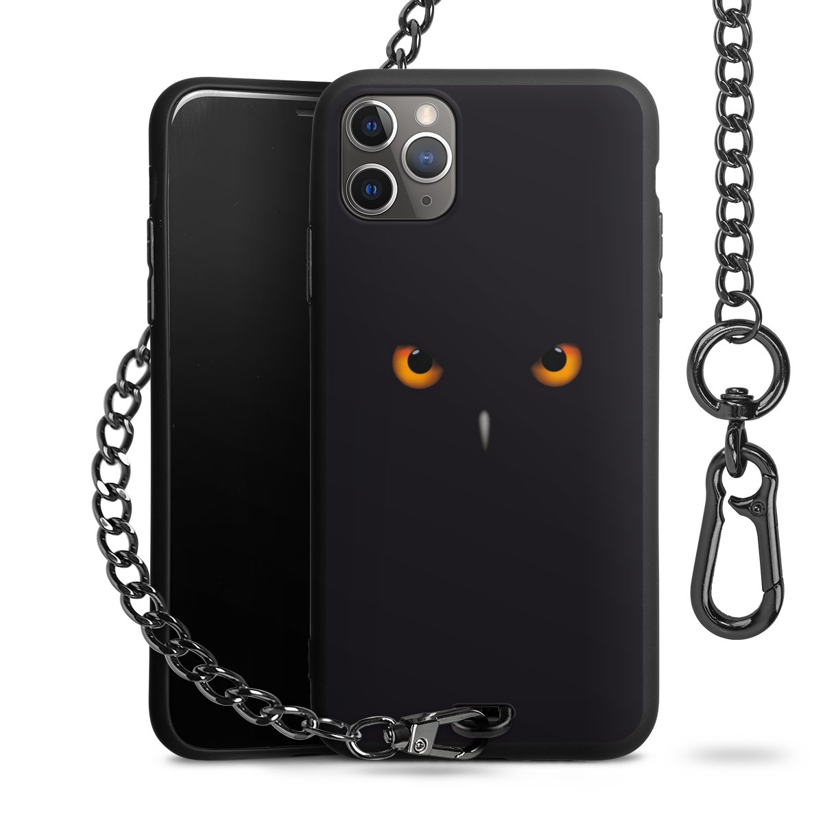 - Mattschwarze Handyhülle mit Metallkette