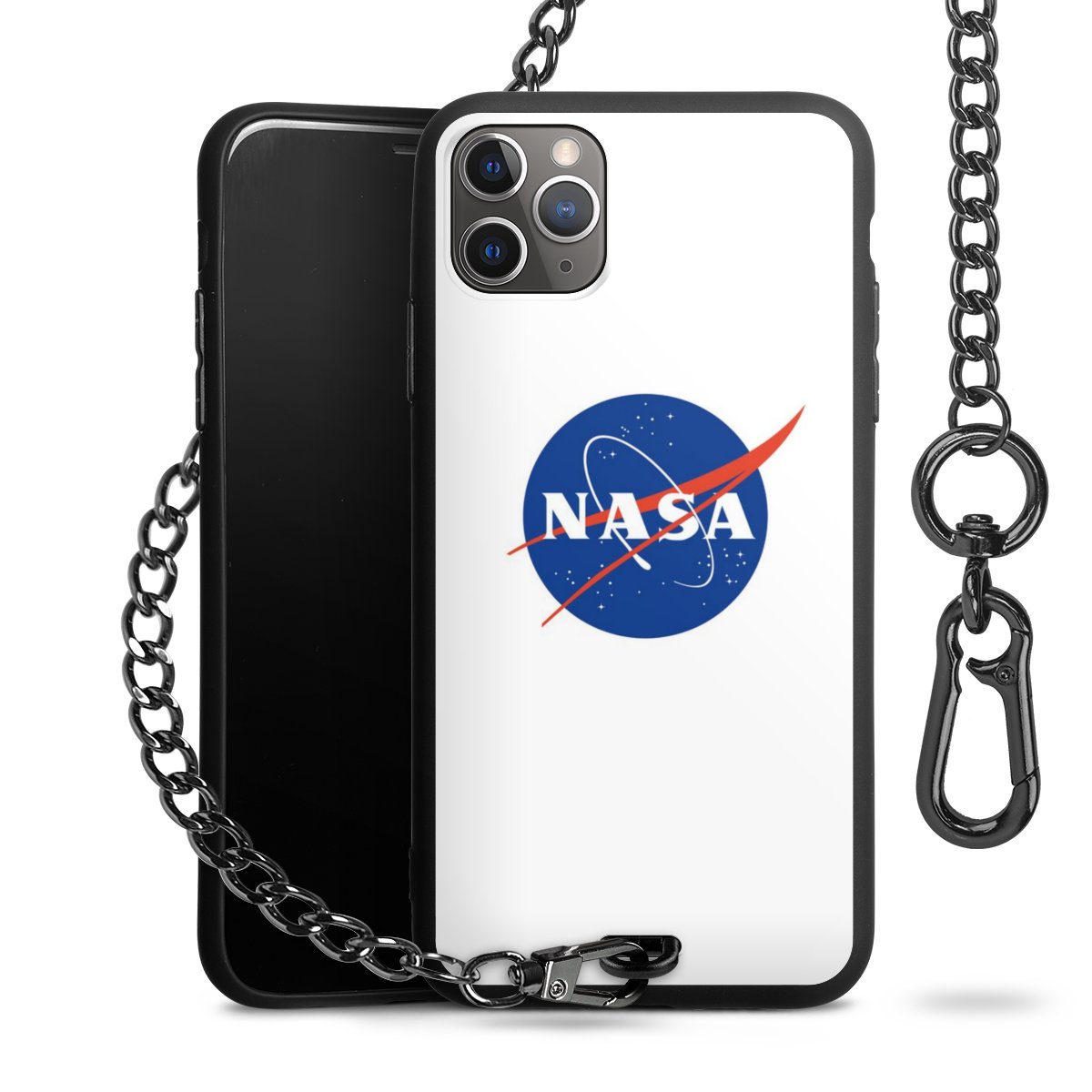 • Mattschwarze Handyhülle mit Metallkette