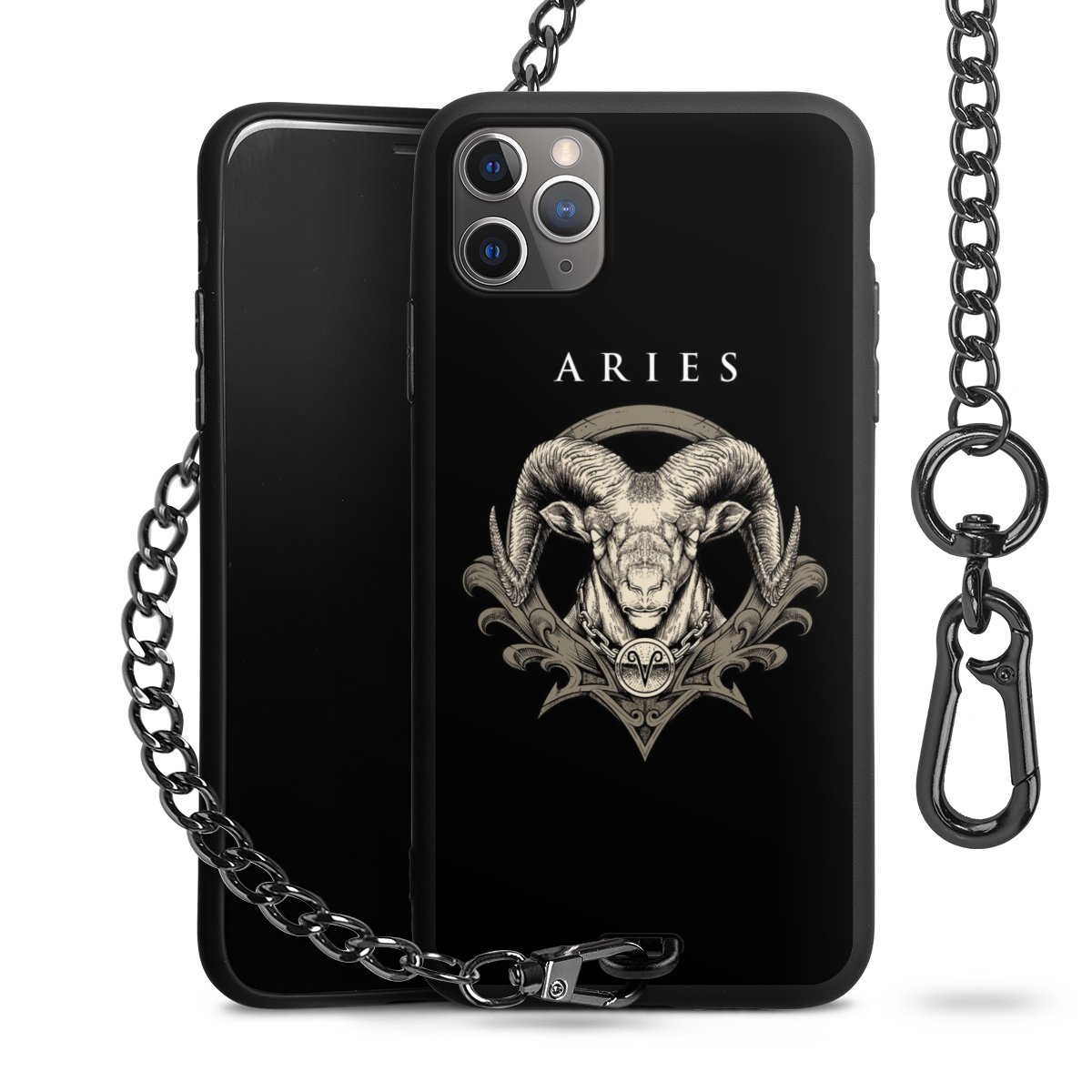 • Mattschwarze Handyhülle mit Metallkette