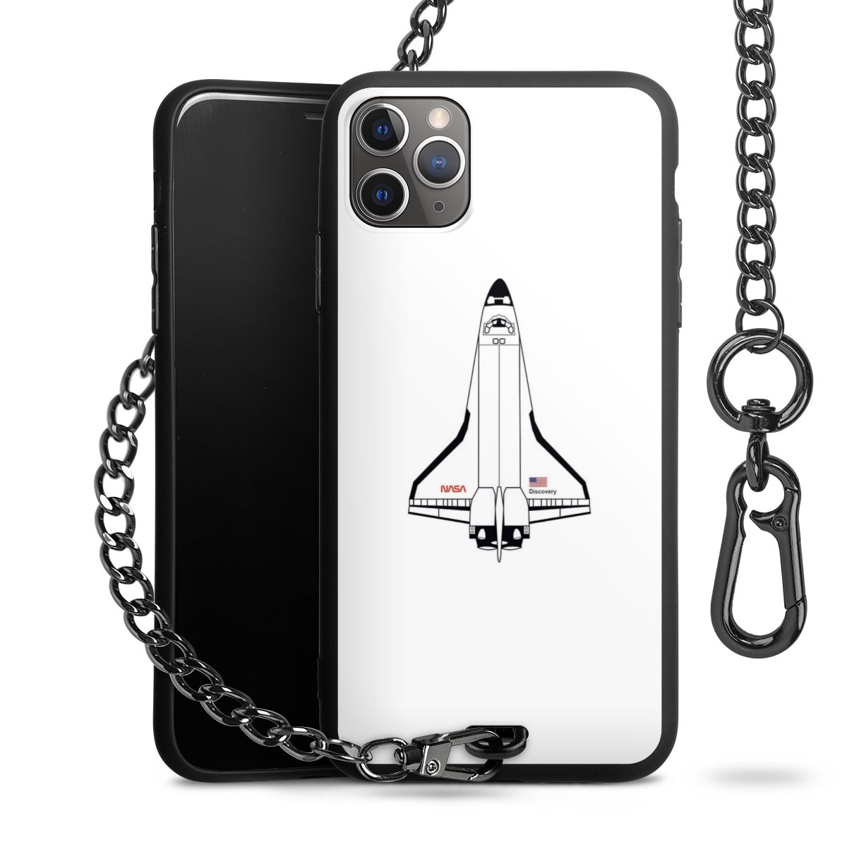 - Mattschwarze Handyhülle mit Metallkette