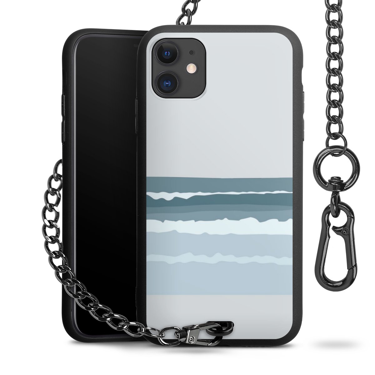 - Mattschwarze Handyhülle mit Metallkette