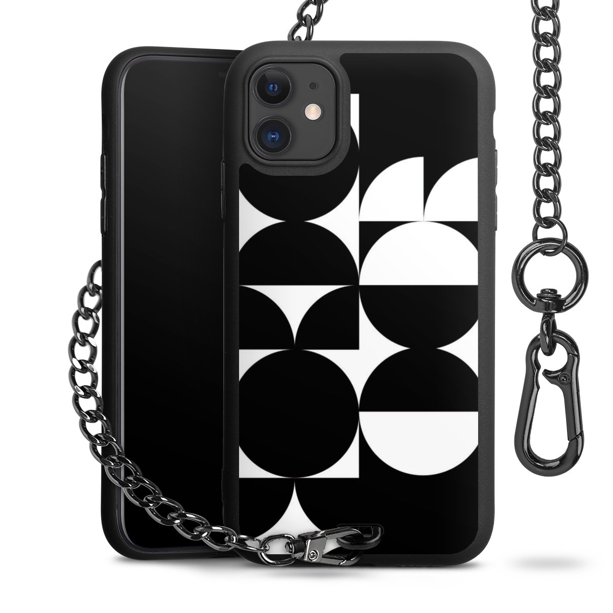 - Mattschwarze Handyhülle mit Metallkette