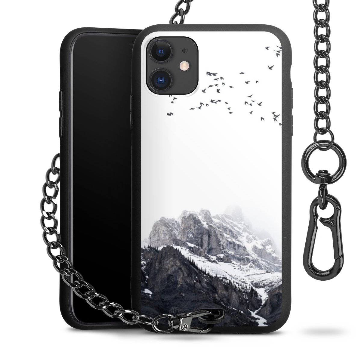 • Mattschwarze Handyhülle mit Metallkette