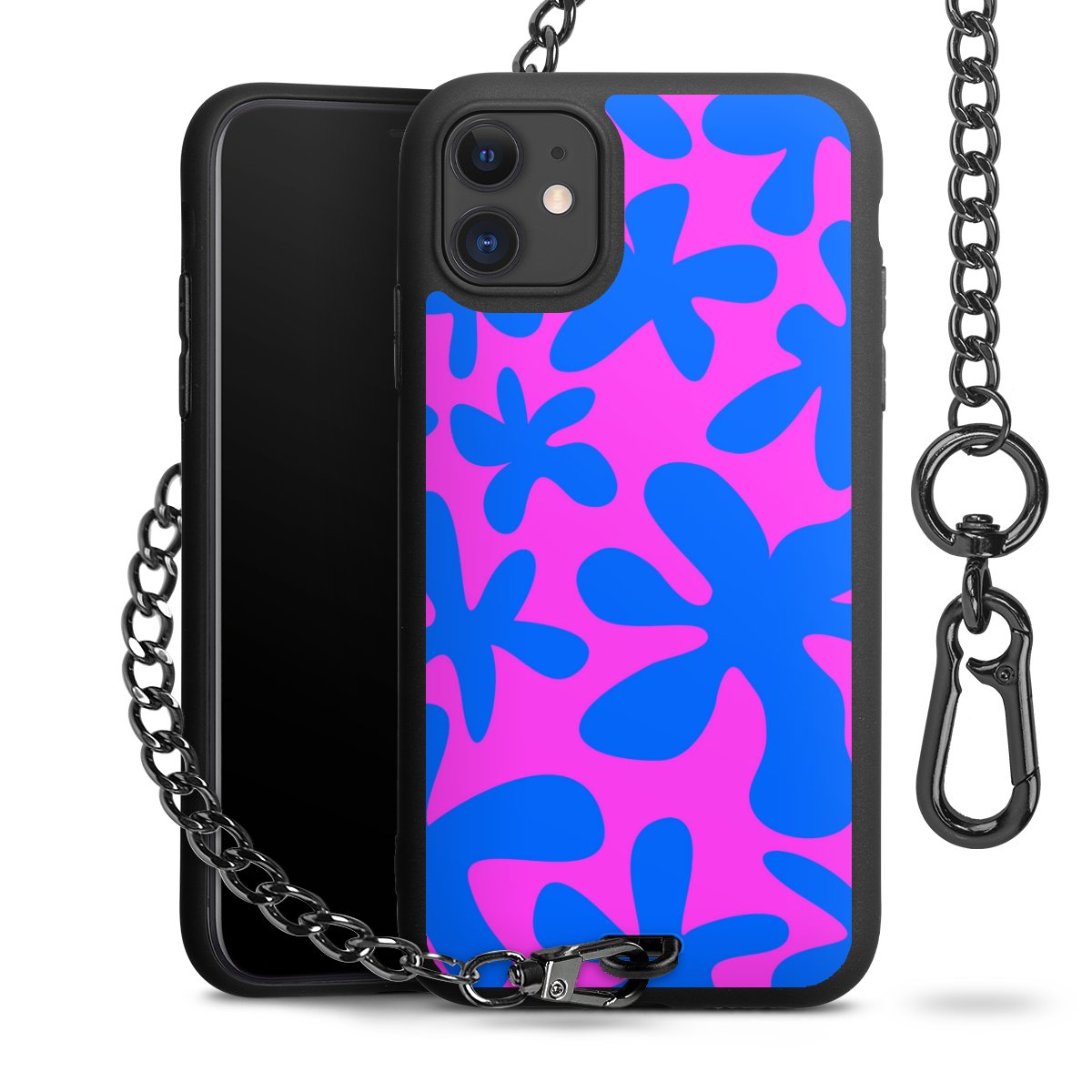 - Mattschwarze Handyhülle mit Metallkette
